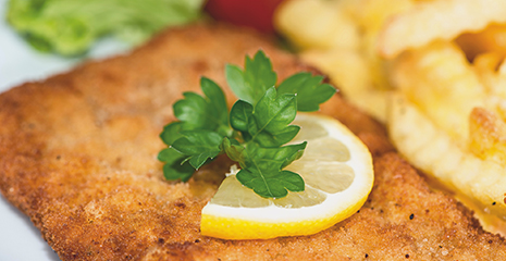 z.B. neben der "Brettljause" auch "Kasnockerln", das "Wiener Schnitzel" oder der "Tiroler Zwiebelrostbraten".